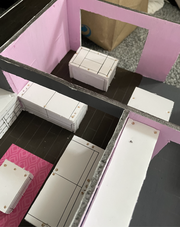 Daniella Payne is exploring the development of interior design within her house, through the 1920s, 1980s and current day. Payne is using her house, alongside research, which will allow her to conclude this project with a series of models depicting what her house did and would have looked like in those decades at a 1:25 scale. Payne's aim is to accurately capture not only what it looked like, but also the atmosphere that would have been created in that time. This exploration will further allow her to explore and understand the development of trends within interior design and how previous decades may have influenced trends that are being used currently.